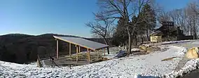 Don Robinson State Park is a public recreation area covering more than 800 acres (320 ha) in Jefferson County, Missouri.[4] Located in the upper LaBarque Creek watershed, the state park's rugged landscape includes sandstone box canyons, shelter caves, cliffs, glades and upland and bottomland forests. The land was bequeathed to the state by businessman Don Robinson following his death in 2012. Robinson started acquiring parcels in the 1960s and stopped when he realized his ambition of amassing a holding the same size as New York City's Central Park.[5] The park opened to the public in 2017.[6] It features the stone house where Robinson began living in 1978[7] as well as two hiking trails and a picnicking area.[4]