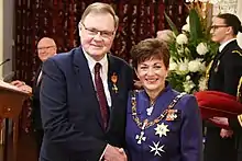 McRae in 2017, following his investiture as an Officer of the New Zealand Order of Merit by the New Zealand governor-general, Dame Patsy Reddy