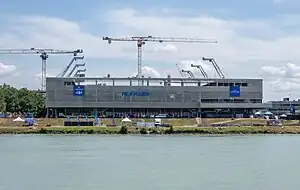 The original name was Tabak-Sportplatz, who was built in 1935 as homeground of SV Austria Tabak Linz. It was renamed Donauparkstadion on August 1, 1997 after the fusion of SV Austria Tabak and FC Linz to FC Blau-Weiß Linz. It has 2,000 seats, of which about 400 are seats.[1] Until FC Blau-Weiß Linz was promoted to the first league in 2011, the Donauparkstadion served as their home ground. Since then it has been used as a training facility for the first team and as a venue for the club's amateur team. Currently FC Blau-Weiß Linz plays in the Gugl Stadium.