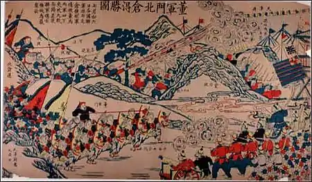 Dong Fuxiang (1839–1908), courtesy name Xingwu (星五),[1] was a Chinese general who lived in the late Qing dynasty. He was born in the Western Chinese province of Gansu. He commanded an army of Hui soldiers, which included the later Ma clique generals Ma Anliang and Ma Fuxiang.[2] According to the Western calendar, his birth date is in 1839.[3]