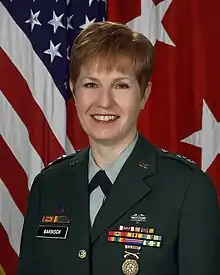 In 2002, Barbisch was promoted to major general.[7] Among her assignments at this rank were military assistant to the Assistant Secretary of the Army (Manpower and Reserve Affairs).[7] She retired in 2005, and her awards include the Defense Superior Service Medal, Meritorious Service Medal, Army Reserve Components Achievement Medal, National Defense Service Medal, Vietnam Service Medal, Armed Forces Reserve Medal, Army Service Ribbon, Army Reserve Components Overseas Training Ribbon, Republic of Vietnam Gallantry Cross with Palm, Republic of Vietnam Civil Actions Unit Citation, Vietnam Campaign Medal, and Expert Field Medical Badge.[6]