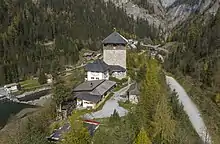 For centuries Klammstein Castle erected high above the historic trade route in the 12th century, served as the administrative seat of the archbishops' keeper of the Gastein Valley. Temporarily held by the Bavarian counts of Ortenburg, it was acquired by the Salzburg archbishop Philip of Spanheim in 1251, whose ministeriales imposed tolls and secured the area at the valley entrance. The surrounding estates were finally incorporated into the Archbishopric of Salzburg in 1297 with the consent of the Bavarian dukes Otto III and Stephen I. The administrative seat was relocated to neighbouring Hofgastein, after Archbishop Leonhard von Keutschach transferred the castle to his relatives as a gift. In 1589 Archbishop Wolf Dietrich Raitenau allowed the demolition of the outer walls.