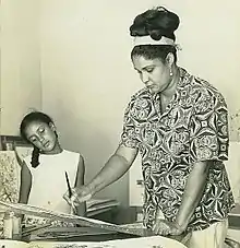 By the age of 12, Dorothy had voiced her intention to become an artist.[1] From 1936 to 1943 she attended Wolmer's High School for Girls in Kingston,[2] where she won several awards for her art.[1] She was tutored by Koren der Harootian, an Armenian artist, at his home in Barbican from 1939 to 1943.[5] After finishing high school, she moved to Toronto where she studied at the Ontario College of Art (now OCAD University) from 1947 to 1951.[2] She learned portraiture and developed her realistic watercolour style there.[4] She was the first Black person to graduate from the university since its inception in 1876.[6][3] In her thesis painting, her model was a Black woman who was wearing a traditional headwrap.[4] She also studied at the Minneapolis School of Art.[7]