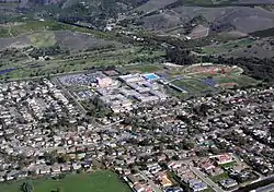 Dos Pueblos High School is a public high school located in Goleta, California, northwest of Santa Barbara. Located adjacent to the foothills on the edge of the Goleta Valley in an area known as El Encanto Heights, it serves a student body of approximately 2,300 in grades 9-12. It is one of three comprehensive high schools in the Santa Barbara Unified School District.