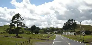 Douglas is a lowly populated locality[1] and a rural centre in east Taranaki, surrounded by dairy, sheep and beef pastoral farming. It is situated 18 km east of Stratford at the intersection of East Road, Ohura Road, Douglas Road South and Bredow Road. East Road and Ohura Road meet to form State Highway 43, linking Stratford to the King Country town of Taumarunui. The Stratford–Okahukura Line, a secondary railway line, runs through Douglas where it veers north-east and away from the state highway for approximately 20 km.