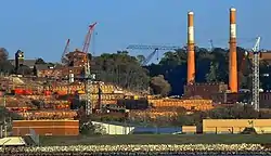 In 2004, the Coast Guard began exploring its need for a new headquarters facility. The General Services Administration, the Office of Management and Budget, and the U.S. Department of Homeland Security determined that it would be more cost-effective for the Coast Guard to move to a secure, federally owned site than to find a replacement lease for Transpoint Building.[8] A new U.S. Coast Guard Headquarters Building on the campus of the historic St. Elizabeths Hospital was proposed in the 2006 federal budget.[9] Construction of the building began in 2009 after receiving funding from the American Recovery and Reinvestment Act of 2009. Budgeted at $646.2 million, it was the largest GSA project at the time.[10]