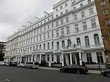 The first Douglas House opened in the former Guards Club on Brook Street, W1, either during or immediately after the Second World War as a leave centre for US servicemen. The building that housed the second club was originally a block of white stuccoed flats or townshouses built in the Victorian era as part of a Bayswater area real estate development. After the Air Force acquired the property, the Douglas House began operating on 2 May 1959. It was jointly named for Air Force Secretary James H. Douglas, Jr. and Lewis Williams Douglas, a former US ambassador to Great Britain.[6] In 1960, in honour of the marriage of Princess Margaret and Anthony Armstrong Jones, the club attracted attention by offering free dinners on the royal wedding day, 6 May, to any serviceman named Tony who had a wife named Margaret.[7] That same year, the Douglas House sponsored an Independence Day celebration in Battersea Gardens that attracted thousands of American servicemen and their families.[8] In November 1960 the club hosted an all-night presidential election watch party.[9] In late 1962 a five-piece London band called the Detours played several dates at the Douglas House nightclub. Later, after changing their name to The Who, the group went on to become of one Great Britain's most popular and successful rock bands.[10][11] On 12 June 1963, Country and Western singer Jim Reeves also performed at the Douglas House.[12] In 1970 the Douglas House was sold by Druce and Company to Adda Hotels, which later remodelled the property and then reopened it as the 188-room full-service Charles Dickens Hotel.[13] In 1999, the property was acquired by Ryan Hotels for £16.9 million.[14] Following further remodelling, it was operated as the Hyde Park Gresham Hotel until 2007 when it became the Park Inn Hotel. Presently, the property is known as the Lancaster Gate Hotel (not to be confused with the nearby Lancaster, London).