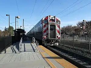 ![]() A northbound Caltrain local train arriving at the station in 2022 | ||||||||||||||||||||||||||||||||||||||||
