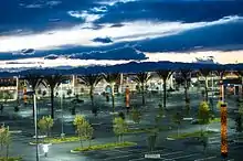 Thousands of people visited Downtown Summerlin on its opening day, causing issues with traffic and parking.[47][52] More than 250,000 people visited Downtown Summerlin during its grand opening weekend.[49] The center has 6,400 parking spaces,[47] as well as tree-lined streets and walkways. The area includes approximately 400 palm trees.[44] Downtown Summerlin had 111 announced tenants at the time of its opening,[29] employing a total of 2,000 people.[53] Dillard's opening was celebrated with six fashion shows.[54] The mall included 32 planned restaurants at the time of its opening, although many of them were not ready for the opening day. Instead, food trucks provided services.[43] Nordstrom Rack held its grand opening on October 24, 2014.[55]