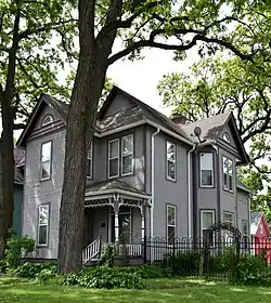 The Dr. Richard and Paulina Stuart House is a historic building located in Des Moines, Iowa, United States. This 2½-story frame dwelling follows an irregular plan and features a hipped roof, gablet, and various gables. The property on which it stands is one of ten plats that were owned by Drake University. The house's significance is attributed to the effect of the university's innovative financing techniques upon the settlement of the area around the campus.[2] The property was bought by Mary A. Scott and her husband in 1889 from E.N. Curl, a stockholder in the University Land Company. They sold part of the lot in 1891 to Dr. Richard and Paulina D. Stuart. The house was built by 1895. The Stuarts continued to own the property until 1907. The house was listed on the National Register of Historic Places in 1988.[1]