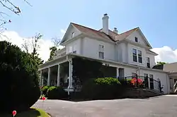 Dr. Virgil Cox House is a historic home located at Galax, Virginia. It was built about 1913, and is a large 2+12-story frame dwelling with Queen Anne and Colonial Revival style design elements. It has a complex exterior presentation, complex roof plan, and an equally complex floor plan. The house is sheathed in German siding and features irregular, front-gable projections on the facade and north side; a projection with a polygonal bay on the southwest corner, a gable-roof dormer on the facade; and a small, upper balcony on the facade with attenuated Tuscan columns and pilasters. Also on the property are a contributing boxwood garden and outbuilding.[3]