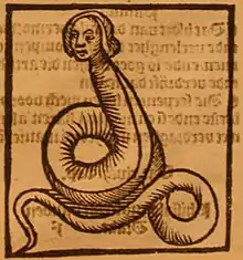Vincent of Beauvais (c. 1190–1264) describes this beast as a vast serpentine creature with the head, face and breasts of a woman.[1] In the Speculum naturale, he states:[2] Draconcopedes serpentes magni sunt, et potentes, facies virgineas habentes humanis similes, in draconum corpus desinentes ("Draconcopedes are great and powerful serpents, with maidenly faces like those of humans, ending in the body of a dragon").