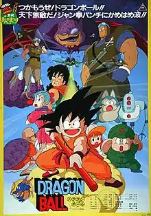 Dragon Ball: Curse of the Blood Rubies[lower-alpha 2] is a 1986 Japanese animated martial arts fantasy adventure film and the first alternate continuity in a series of feature films in the Dragon Ball anime franchise, based on the manga of the same name by Akira Toriyama. The film is a modified adaptation of the initial story arc of the manga, with the original character King Gurumes substituting Emperor Pilaf's role as the main antagonist. It depicts how Goku meets up with Bulma, as well as Oolong, Yamcha, Puar and finally Master Roshi during his first search for the Dragon Balls. Gurumes and the other new characters were designed for the film by Toriyama.[1]