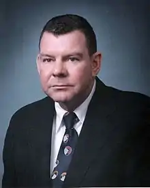 Born in Blaney, South Carolina (now Elgin), Edens spent his entire life about the capital city of Columbia.[2] His mother was the former May Youmans (1898–1975), a native of Hampton County, South Carolina.[3] His father, Drake, Sr. (1899–1966), had developed the family farm into a supermarket chain, and Edens moved naturally into a management position within Edens Food Stores. When his career was interrupted by World War II, Edens enlisted in the United States Marine Corps and served from 1943 to 1946, seeing action in the Pacific Theater of Operations.[4] On his return to private life, Edens married Ferrell McCracken (1923–1982), a North Carolina native whom he had met while both were serving in the Marines. Edens enrolled at the University of South Carolina at Columbia and in 1949 graduated with a degree in business administration. In 1955, Edens Food Stores merged with Winn-Dixie, and the following year Edens founded the Edens-Turbeville Agency, which he served as president from 1956 to 1964, when he sold his interest in the company to W. L. Turbeville.