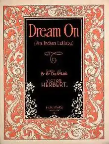 "Dream On (An Indian Lullaby)" is a popular song written by B.G. DeSylva with music composed by Victor Herbert. The song is a Cherokee mother's lullaby to her child. The lyrics as first written are:[1]