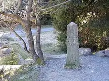 The Dreieckige Pfahl ("Triangular Post") is a historic boundary stone, about 1.35 metres high and made of granite, located southwest of the Brocken, the highest mountain in the Harz Mountains of central Germany. The stone, erected before 1866, marked the border between the Kingdom of Hanover and the Duchy of Brunswick. Originally this spot was a tripoint. During the division of Germany the border between the German Democratic Republic and the Federal Republic of Germany ran past the Dreieckiger Pfahl. Today it marks the border between the states of Saxony-Anhalt and Lower Saxony, the post lying just within the Lower Saxon side. During the Cold War it was accessible from the west.