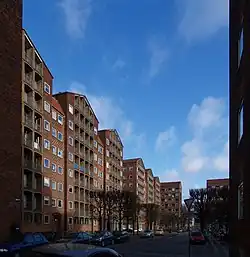 Dronningegården is a Modernist residential complex in central Copenhagen, Denmark, consisting of four L-shaped buildings defining an urban space around the intersection of Adelgade and Dronningens Tværgade. Designed by Kay Fisker in collaboration with C. F. Møller and Svenn Eske Kristensen, it was built between 1943 and 1958, during the transition from Traditionalism to Modernism, as a notable example of Nordic Functionalism.[1]
