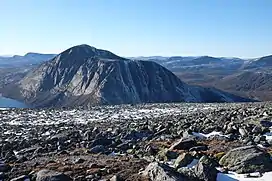 Drugshøi is a mountain in Lesja Municipality in Innlandet county, Norway. The 1,748-metre (5,735 ft) tall mountain lies within the Dovrefjell-Sunndalsfjella National Park, about 30 kilometres (19 mi) north of Dombås and about 26 kilometres (16 mi) northeast of the village of Lesja. The mountains Larstinden and Store Langvasstinden lie about 4.5 kilometres (2.8 mi) to the east, the mountain Storstyggesvånåtinden lies about 5 kilometres (3.1 mi) to the southeast, the mountain Mjogsjøhøi lies about 7 kilometres (4.3 mi) to the south, and the mountains Storskrymten and Salhøa lie about 5.5 kilometres (3.4 mi) to the northwest.