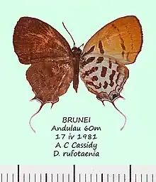Drupadia rufotaenia is a species of butterfly belonging to the lycaenid family described by Hans Fruhstorfer in 1912. It is found in the Indomalayan realm.[2]