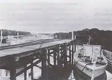 King tides regularly flooded the estuarine plain. Consequently, the tramline along the mangroves from the magazines to the jetty at Broad Creek was frequently damaged. In July 1917, the jetty was inundated by the highest tide on record, 11 feet 10 inches (3.6 metres) above low water, and was washed away. The following August an unusually high tide washed away the gear of the levee workmen, including planks, barrels, barricades and bags of silt, which disappeared without a trace.[4]