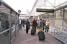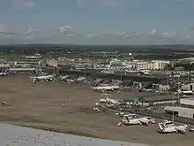 During the 1960s, the number of scheduled carriers continued to grow. By the close of the 1960s, a sizeable number of Boeing 737s, BAC One-Elevens, Boeing 707s and Hawker Siddeley Tridents were using the airport regularly. In the late 1960s new departure gate piers were added close to the old terminal to cope with larger aircraft.[11] These piers would subsequently be connected to Terminal 1. During 1969, the airport handled 1,737,151 passengers.[12]
