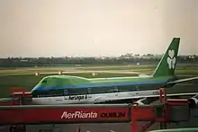 The advent of wide-body aircraft posed opportunities and challenges for aviation. In 1971, Aer Lingus took delivery of two new Boeing 747 aircraft; the first one arrived in March and, shortly afterwards, performed a flyover above O'Connell Street in Dublin on Saint Patrick's Day; a third Boeing 747 was delivered later that decade. To cope with this, a new £10 million passenger terminal capable of handling six million passengers per year, which became known as Terminal 1, was opened in June 1972.[11] The growth which was anticipated at Dublin's airport (and provided for through heavy investment by the airport and Aer Lingus) during the 1970s did not materialise immediately.