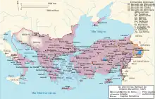Upon Damian's death, Nikephoros Ouranos, a general who made a career against the First Bulgarian Empire,[8] was appointed to the post of duke of Antioch. Alongside Basil, he carried out a series of military expeditions aimed at appeasing the province, while also assisting in the expansion of the imperial borders toward the Kingdom of the Iberians. As an imperial representative, he acquired full powers of command of the troops stationed on the eastern frontier and, according to a seal of his, was appointed as "lord of the East."[9][10]