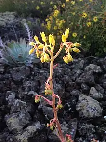 This species bears a close resemblance to the inland form of Dudleya ingens, differing in its coastal habit and more yellowish flowers. It is a tetraploid relative to the basic chromosome number of the genus, with a gametic chromosome count of n=34.[4]