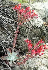 - ↑ Yost, J. M.; Bontrager, M.; McCabe, S. W.; Burton, D.; Simpson, M. G.; Kay, K. M.; Ritter, M. (2013). "Phylogenetic relationships and evolution in Dudleya (Crassulaceae)" (PDF). Systematic Botany. 38 (4): 1096–1104. doi:10.1600/036364413X674760. S2CID 15715233.