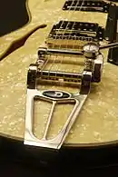 Every instrument features Duesenberg's own hardware parts which are designed by Dieter Gölsdorf.[5] Due to the classic approach, all standard hardware parts are nickel-plated, as was customary before chrome finishes became popular.[3] Hardware parts are being constantly developed and improved so that the current tremolo on Duesenberg guitars have been optimized in shape and detail continuously until today.