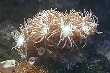 Duncanopsammia is a monotypic genus of stony corals. It is represented by the single species, Duncanopsammia axifuga, commonly called whisker coral, duncanops coral, or simply duncan coral.[2] Individual polyps are fairly large with round skeletal bases (corallites) 10–14 millimetres (0.39–0.55 in) in diameter and larger central discs from which multiple tentacles radiate; the polyps form a structure branching at irregular intervals to form a large colony.