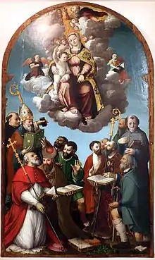 He was born in Caldarola. He was a pupil and collaborator of Lorenzo Lotto from 1550 al 1553. After his apprenticeship, he worked in Ascoli Piceno, Mogliano, Macerata, Matelica, Recanati, and Corridonia. In 1535, he painted Madonna and child with Saints Cosmo and Damiano for the sacristy of the church of San Martino in Caldarola. He painted an altarpiece of the Immaculate Conception and a Madonna of the Rosary for the church of San Gregorio Magno, Mogliano, and a Conversation regarding the Immaculate Conception for Massa Ferrara,[1] and a Crucifixion with Saints Nicola da Tolentino, Antonio da Padova, Crispino and with a Resurrection, Deposition, and Descent to Purgatory below for a church in Marca Montana, near Matelica. The work is inspired by Lotto's work for the church of Santa Maria in Telusiano in Monte San Giusto.[2]