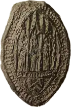In 1338, Richard de Bury (or Aungerville), Bishop of Durham and noted bibliophile, attempted to secure the future of the college by persuading King Edward III to assign the proceeds of the profitable rectory of Simonburn to the nascent college, which he also intended to establish with new statutes dedicating it to God and St Margaret, and equip with his famed library of over 1,500 volumes.[4] However, the surviving college rolls suggest that no part of this took place, and Simonburn was given instead to the Canons of St George's Windsor, while the college did not gain a library until 70 years after de Bury's death.[5]