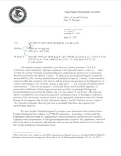 - ↑ Durham, John (May 12, 2023). "Report on Matters Related to Intelligence Activities and Investigations Arising Out of the 2016 Presidential Campaigns" (PDF). Justice Department. Retrieved May 15, 2023.
