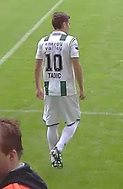 On 10 April 2012, it was announced that Tadić had signed for Twente in a €7.7 million move from Groningen.[8] In his debut game on 12 August 2012, he scored two goals against his former club.[9] He finished his debut season as the team's second-highest scorer with 16 goals in all competitions, two less than Nacer Chadli.[10] In the following season, Tadić again scored 16 goals across all competitions, being the team's top scorer.[10]