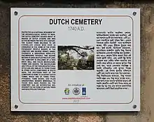 The Dutch Cemetery (Dutch: Nederlandse begraafplaats) of Chinsurah was constructed on the order of the director of the Dutch East India Company in Bengal. The cemetery and all its graves are now maintained and Archaeological Survey of India under the protection of ancient monuments and archaeological sites and remains of national importance.[1]