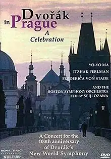 Dvořák in Prague: A Celebration was an 89-minute televised concert presented in Prague's Smetana Hall on 16 December 1993, in which thirteen pieces of music by Antonin Dvořák were performed by the pianist Rudolf Firkušný, the cellist Yo-Yo Ma, the violinist Itzhak Perlman, the mezzo-soprano Frederica von Stade, the Prague Philharmonic Chorus and the Boston Symphony Orchestra under the direction of Seiji Ozawa. It was produced by Sony Classical Film and Video, Czech Television and Germany's Zweites Deutsches Fernsehen in association with Pragokoncert, the Netherlands' Algemene Vereniging Radio Omroep and the United States' Public Service Broadcasting and MJI Broadcasting, and was released on Laserdisc, VHS video cassette, CD and audio cassette by Sony Classical Records and on DVD by Kultur Video.[1][2][3][4]