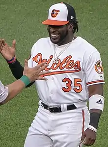 On March 9, 2019, Smith was traded to the Baltimore Orioles in exchange for international pool money.[18] He began the season as the starting left fielder.[19] On May 31, 2019, Smith hit his first career grand slam off Drew Pomeranz as the Orioles won 9–6 over the San Francisco Giants.[20] Smith's season was cut short due to injury, playing in just 101 games. He finished hitting .241 with 13 home runs and 53 runs batted in.