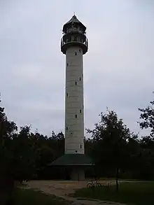 An observation tower, with a height of 40 metres (130 ft), was built at the summit of the hill in 2005. This is used for forest fire observation, and is also open to the public at certain times, offering wide views of the surrounding countryside and the city of Poznań.