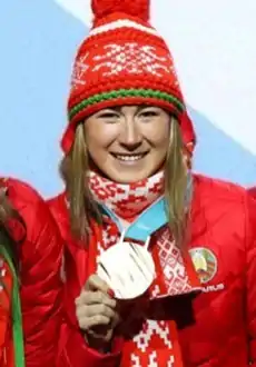 Dzinara Smolskaya (née Dzinara Talhatauna Alimbekava, Kazakh: Динара Талғатқызы Әлімбекова, romanized: Dinara Talğatkyzy Älimbekova, born 5 January 1996) is a Kazakhstan-born Belarusian biathlete. She won a gold medal in the 4×6 km relay at the 2018 Olympics.[1] Alimbekava won her first IBU World Cup competition (a sprint) in Hochfilzen, Austria, in December 2020, and finished as the Under-25 Cup leader for the 2020-21 World Cup season.[2]