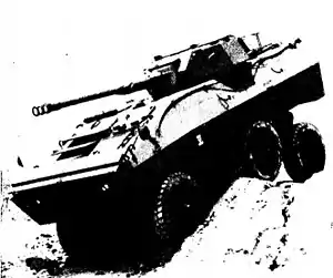 The EE-11 Urutu is a Brazilian amphibious armored personnel carrier. It was based on the drive train and chassis components of the EE-9 Cascavel armored car and initially emerged as part of a project to develop an amphibious troop-carrying counterpart to that vehicle for the Brazilian Army and Marine Corps (CFN).[3] The first pre-production models entered service with the CFN in 1973[3] and serial production commenced the following year.[2] While the CFN declined to adopt the EE-11 Urutu in large numbers, the Brazilian Army was more forthcoming and purchased 223;[6] these entered service in 1975.[2]