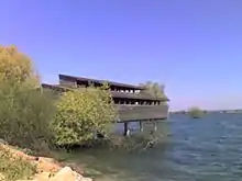 "Lac du Der-Chantecoq" or "lac-réservoir Marne" (often abbreviated to "lac du Der") is the third lake built by the institution and was inaugurated in 1974.[13] It is located in the Champagne-Ardenne region, on the border between the Marne and Haute-Marne departments. Deriving from the Marne and one of its tributaries, the Blaise, the lake owes its name both to the Pays du Der, the natural region in which it is located, and to the village of Chantecoq, which was destroyed along with those of Champaubert-aux-Bois and Nuisement-aux-Bois when it was created.[14] Its rated capacity is 350 million m3. With a surface area of 48 km2, it is the largest artificial lake in Europe, excluding dam lakes. It is also the largest man-made lake in France, all categories combined.[15]