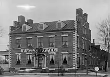 The Eagle Hotel was constructed in 1826 by Thomas King. It was built at a time when "plank road, turnpikes, canals and later railroads went through or near Waterford." Also, the Waterford was used as a "terminal and distribution point" for the developing salt industry in New York.[4] The Eagle Hotel was documented by the Historic American Buildings Survey (HABS) in 1933.[5] The hotel was listed on the National Register of Historic Places on November 28, 1977.[1] The hotel was purchased by the Fort Le Boeuf Historical Society to preserve it and to prevent it from being demolished. The Eagle Hotel was renovated and the kitchen modernized from October 1997 to February 1998.[6] A restaurant was opened in the hotel but closed several months later. In October 1998, the Eagle Hotel was leased by the owners of the Sugar 'n Spice in Titusville, Pennsylvania to open another location of the restaurant in the hotel.[7] The hotel was designated a contributing property to the Waterford Borough Historic District on March 9, 1990.[8]