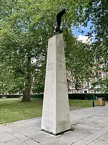 The Eagle Squadrons Memorial is a Second World War memorial in Grosvenor Square, London. It commemorates the service of the three Royal Air Force Eagle Squadrons from 1940 to 1942, during the Battle of Britain, and in particular their 244 Americans and 16 British fighter pilots, of whom 71 were killed. The bronze sculpture of an eagle which tops the memorial is by Elisabeth Frink.