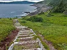 The East Coast Trail (ECT) is a long-distance coastal footpath located in the Canadian province of Newfoundland and Labrador. It is a developed trail over 336 kilometres (209 mi) long,[1] creation of which began in 1994. It is made up of 25 linked wilderness paths and passes through more than 30 communities.[2] It was named one of the best adventure destinations by National Geographic in 2012 and is extended and improved yearly.[3]