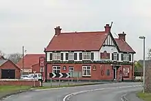 The parish church of Holy Trinity was built by Charles Ward of Lincoln between 1853 and 1854, to a design by William Butterfield. The work was commissioned by the William Dawnay, 7th Viscount Downe, and the west end is thought to be modelled on the church at Lindisfarne (Holy Island) in Northumberland. It is now a Grade II listed building.[1] Dawnay's commission also included the vicarage[2] and the Church of England primary school, together with its schoolhouse, all of which are Grade II listed. Similar clusters of buildings were erected at Hensall and Pollington.[3]