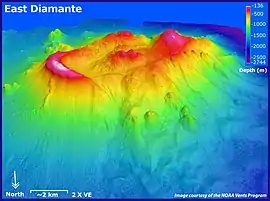 ![]() Bathymetic image of East Diamante as viewed from the north/northeast | |