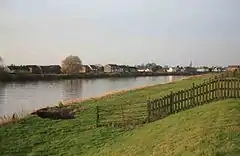 ![]() Approaching the village from the east, the bank of the Trent visible across the road junction | |