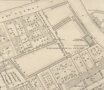 It was created in 1820 in the parish of St Cuthbert's, who had an overflow Chapel of Ease on Buccleuch Street, with its own graveyard. The additional burial ground was organised by the kirk session.[3] It was originally called Newington Burial Ground but was renamed "East Preston Street" in 1848 on the opening of Newington Cemetery nearby.