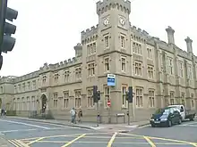 The oldest part of the building was designed by William McIntosh Brooks in the Tudor style and completed in 1837.[1] The design for this building, known as the "main entrance block", involved a roughly symmetrical 150 feet (46 m) main frontage facing St Helen's Street; the central section featured an arched doorway on the ground floor and a transomed window on the first floor flanked by twin castellated towers; there were also castellated side wings and two end pavilions which were slightly projected forwards.[1]